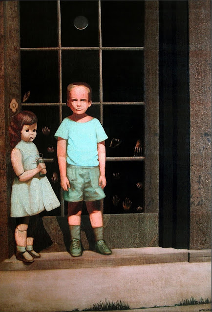 The subject of surrealist piece by artist, Bill Stoneham, is enough to make anyone uneasy. Depicting a young boy – a portrait of the artist as a child – and a life-sized doll girl in front of a pane of glass with ghostly hands pressed against it, the work was supposed to represent the divid between fantasy and reality, and how the possibility of other lives effect our own experience.